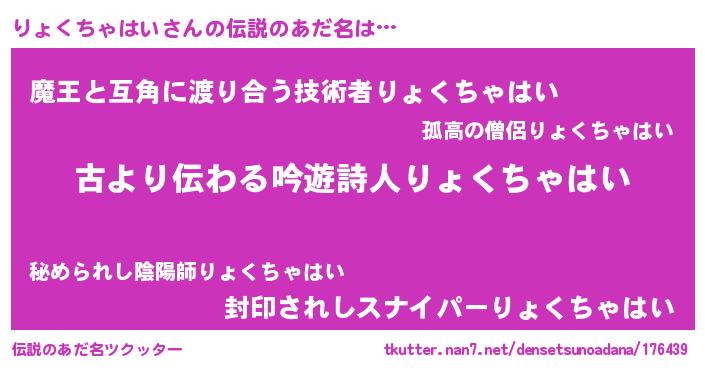 | ヘコむあだ名 | 『りょくちゃはい(笑)』『りょふぇ~』 |
