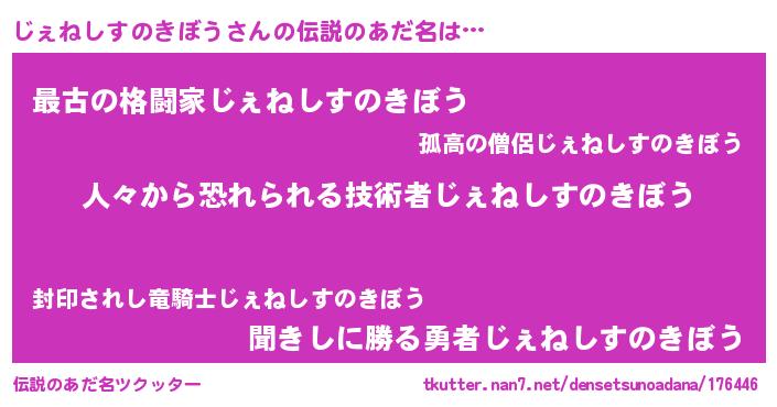 | 意味不明あだ名 | 『自称じぇねしすのきぼう』 |