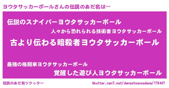 | 胡散臭い通販商品みたいなあだ名 | 『来世でも幸せになれる健康食品…その名も「ヨウタサッカーボール」』 |