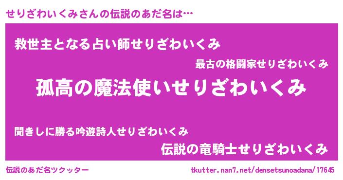 | 意味不明あだ名 | 『とにかく怪しいせりざわいくみ』 |