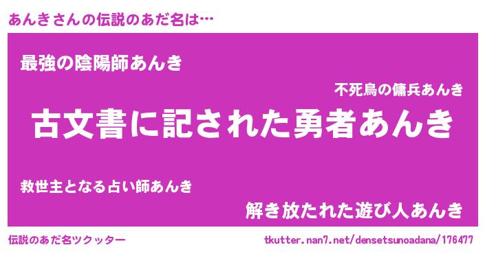 | 意味不明あだ名 | 『永久保存あんき』『あんきフォーエバー』 |