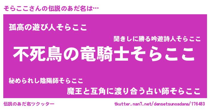 | 女子向けラノベタイトル風あだ名 | 『そらここ姫と円卓の騎士』 |