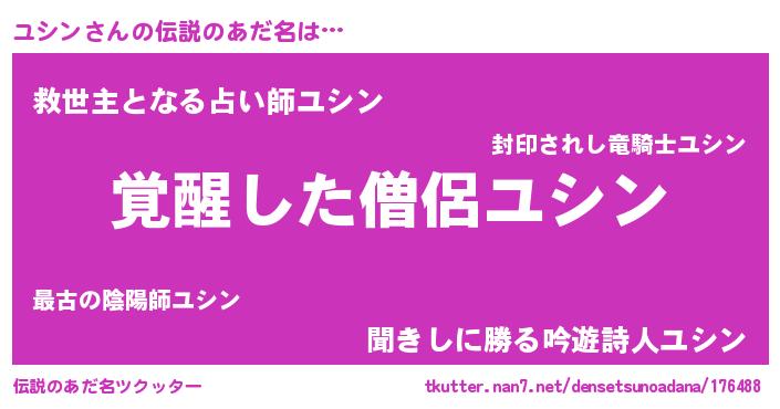 | ヒーロー風カッコイイあだ名 | 『幻影騎士ユシ』『友情の使者ユシン』 |