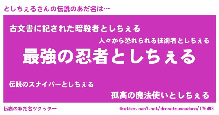 | 意味不明あだ名 | 『としちぇるフォーエバー』 |