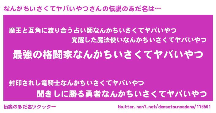 | ヒーロー風カッコイイあだ名 | 『ウルトラなんかちいさくてヤバいやつマン』 |