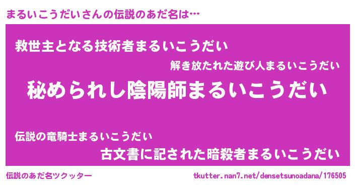 | 意味不明あだ名 | 『まるいこうだいフォーエバー』 |
