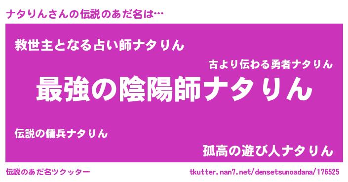 | ヒーロー風カッコイイあだ名 | 『ウルトラナタりんマン』『仮面ナタダー』 |