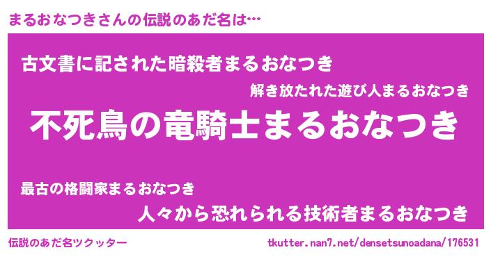 | 意味不明あだ名 | 『自称まるおなつき』 |