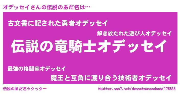 | ヒーロー風カッコイイあだ名 | 『超時空戦士オデッセイ』『仮面オデダー』 |