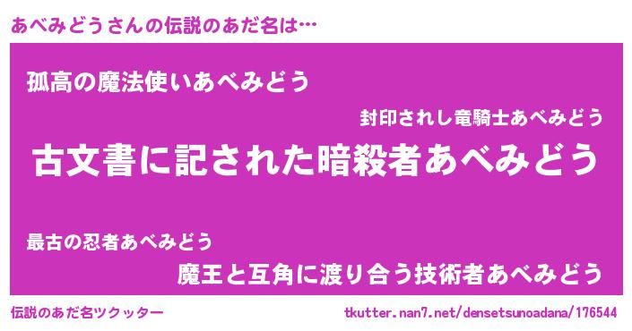 | 意味不明あだ名 | 『永久保存あべみどう』『自称あべみどう』 |