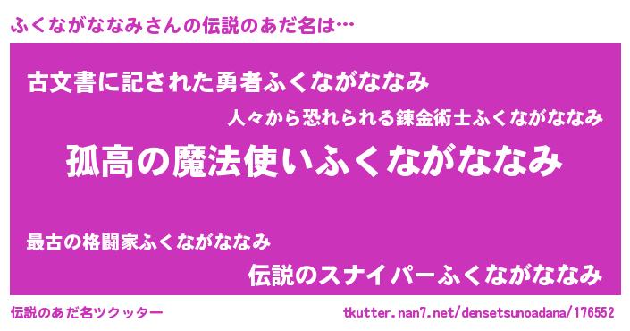 | 意味不明あだ名 | 『とにかく怪しいふくながななみ』 |