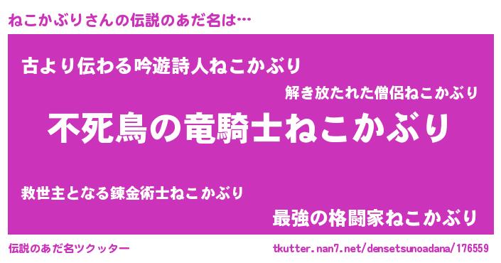 | ヒーロー風カッコイイあだ名 | 『最強戦士ネコカブリ』『仮面ネコダー』 |