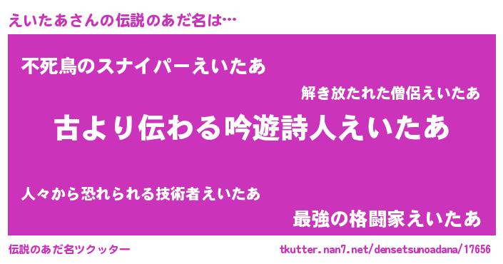| ヒーロー風カッコイイあだ名 | 『ネオエイタア』『スーパーエイタア』 |