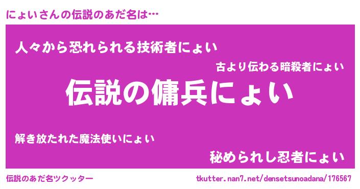 | 意味不明あだ名 | 『自称にょい』『ペロリンにょい』 |
