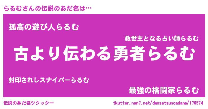 | ヘコむあだ名 | 『らるむ(遠い目)』『らるお』 |