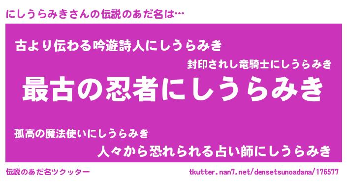| ヒーロー風カッコイイあだ名 | 『ウルトラにしうらみきマン』 |