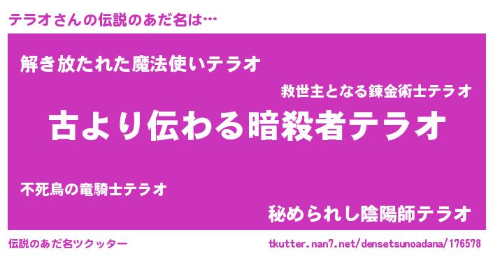 | ヘコむあだ名 | 『テラオ(爆)』『テラを』『つくし』 |