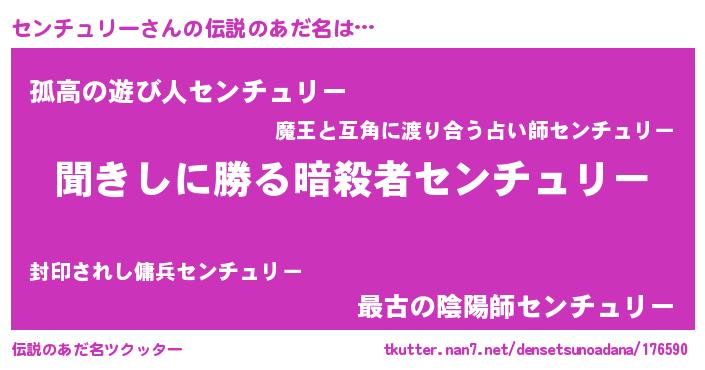 | 男性向けラノベタイトル風あだ名 | 『センチュリーという概念が存在しない退屈な世界 』 |