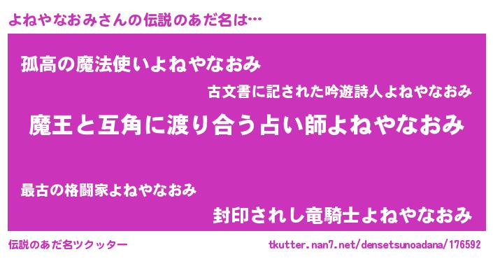 | 料理風あだ名 | 『よねやなおみごはん』 |