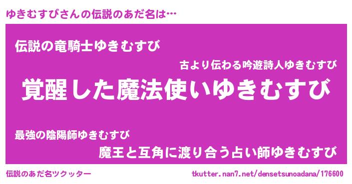 | 意味不明あだ名 | 『住所不定無職ゆきむすび(6歳)』 |