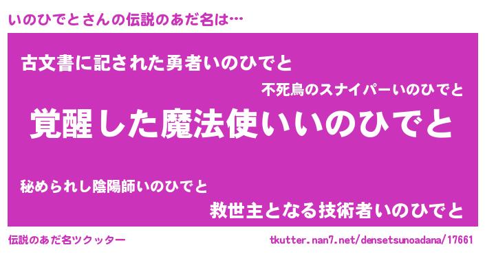 | ヒーロー風カッコイイあだ名 | 『炎刃騎士イノ』『ネオイノヒデト』 |