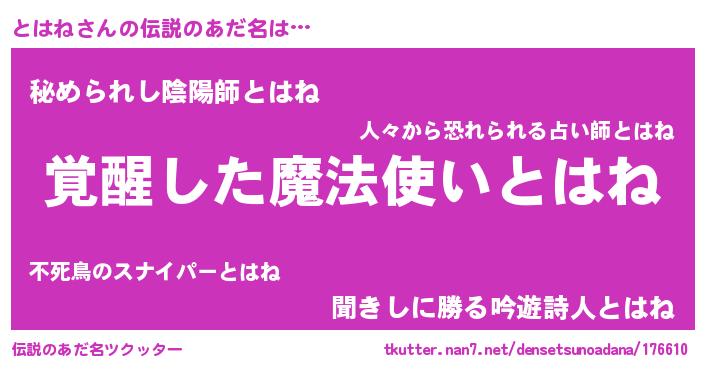 | ヘコむあだ名 | 『とはを』『牛乳』『とはね(小並感)』 |