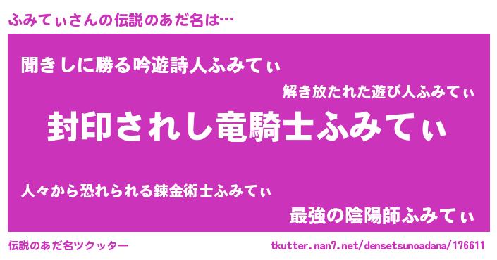 | ファンタジー風あだ名 | 『フミフェル』『フミディッシュ』 |