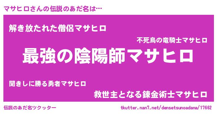 | ファンタジー風あだ名 | 『エターナルマサヒロー』『クインマット』 |