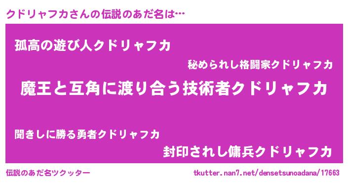 | ファンタジー風あだ名 | 『クインクット』『カーククドラー』 |