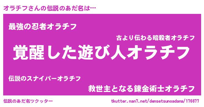 | 女子向けラノベタイトル風あだ名 | 『オラチフ様がみてる』『オラチフ恋絵巻』 |