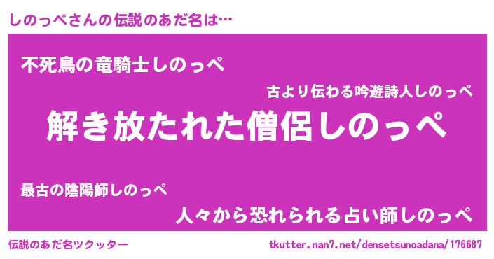 | ヒーロー風カッコイイあだ名 | 『銀牙騎士シノ』『スーパーシノッペ』 |