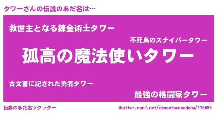 | ヒーロー風カッコイイあだ名 | 『暗黒騎士タワ』『究極戦士タワー』 |