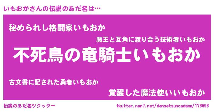 | 男性向けラノベタイトル風あだ名 | 『いもおかの憂鬱』 |