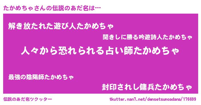 | ヒーロー風カッコイイあだ名 | 『友情の使者たかめちゃ』『魔戒騎士タカ』 |