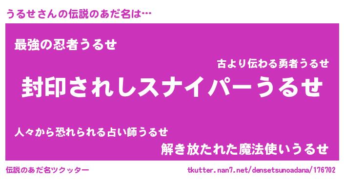 | ヘコむあだ名 | 『うるもー』『つくし』『うるお』 |