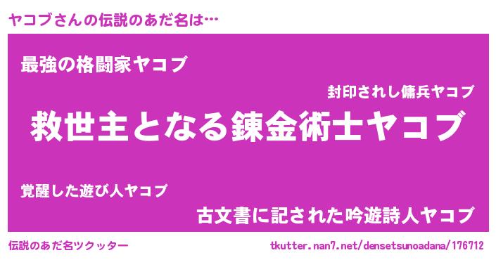 | ポケモン風あだ名 | 『ヤックウザ』『ヤコブダネ』 |