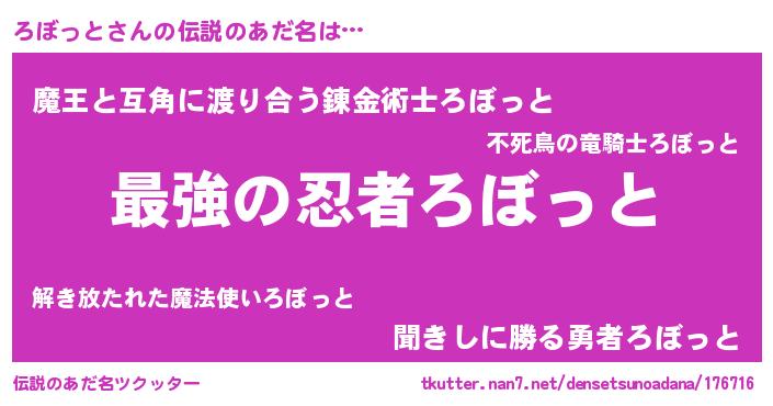 | 恥ずかしいあだ名 | 『ろぼっちょ』『ボンバーヘッドろぼ』 |