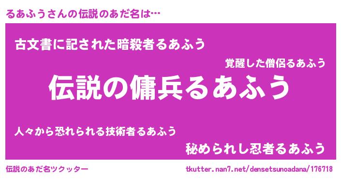 | ヒーロー風カッコイイあだ名 | 『スーパールアフウ』『ネオルアフウ』 |