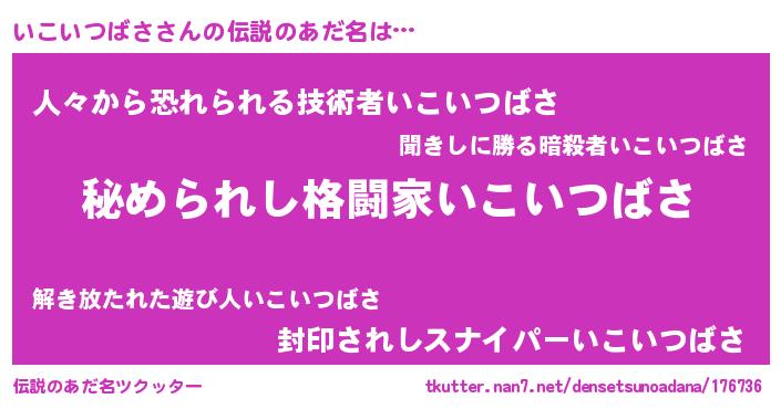 | 意味不明あだ名 | 『いこいつばさフォーエバー』 |