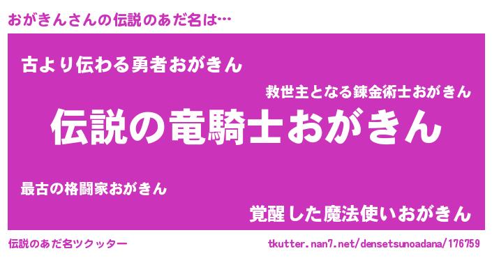 | 男性向けラノベタイトル風あだ名 | 『魔弾の王とおがきん』『おがきんの憂鬱』 |