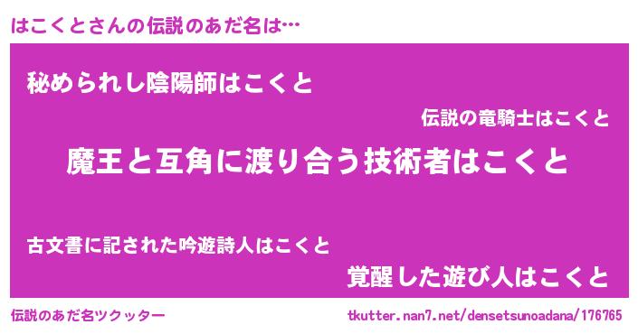 | ヒーロー風カッコイイあだ名 | 『愛の使者はこくと』『天弓騎士ハコ』 |
