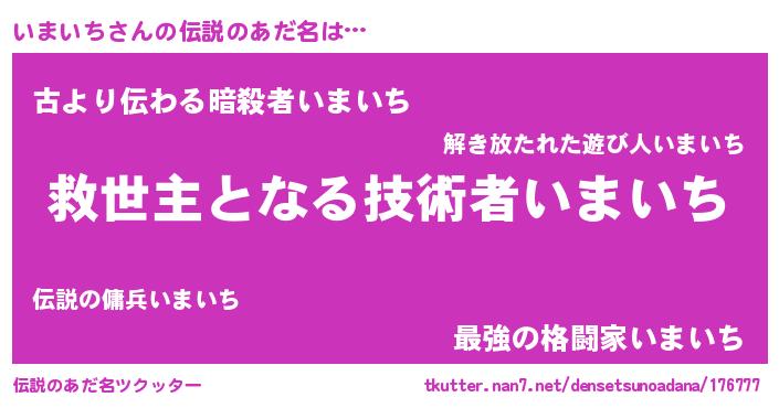 | ヒーロー風カッコイイあだ名 | 『慈愛の使者いまいち』『ネオイマイチ』 |