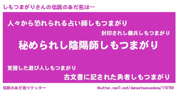 | ファンタジー風あだ名 | 『エターナルシモツマガリー』 |
