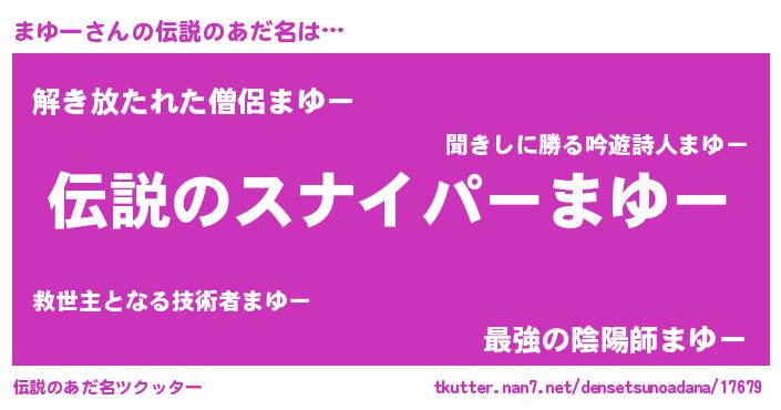 | ファンタジー風あだ名 | 『マユフェル』『ゼマユトゥ』 |