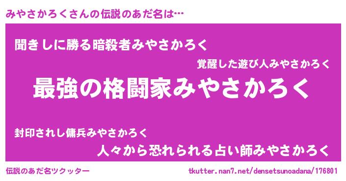 | 意味不明あだ名 | 『住所不定無職みやさかろく(7歳)』 |
