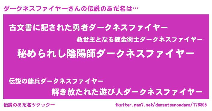 | 意味不明あだ名 | 『ダークネスファイヤーフォーエバー』 |