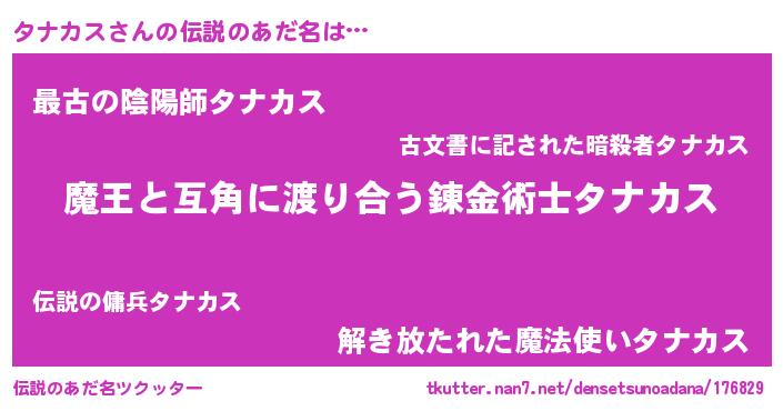 | 女子向けラノベタイトル風あだ名 | 『タナカス恋絵巻』『タナカス伯爵の花嫁』 |