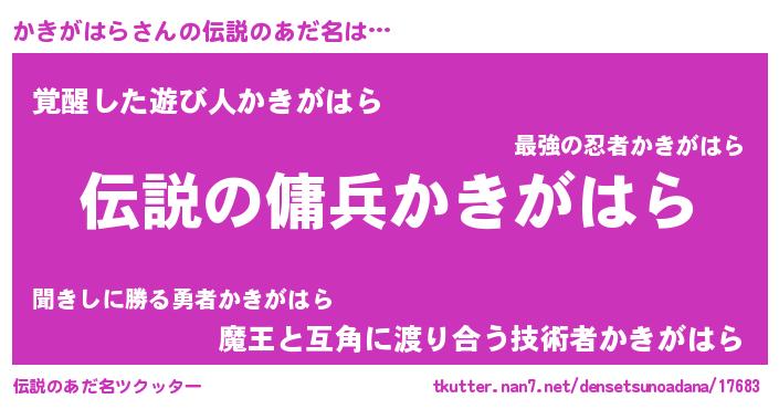 | ヒーロー風カッコイイあだ名 | 『仮面カキダー』『スーパーカキガハラ』 |