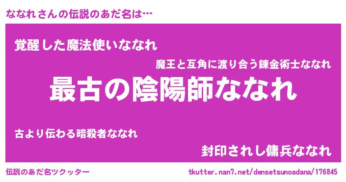 | 男性向けラノベタイトル風あだ名 | 『この素晴らしい世界にななれを!』 |