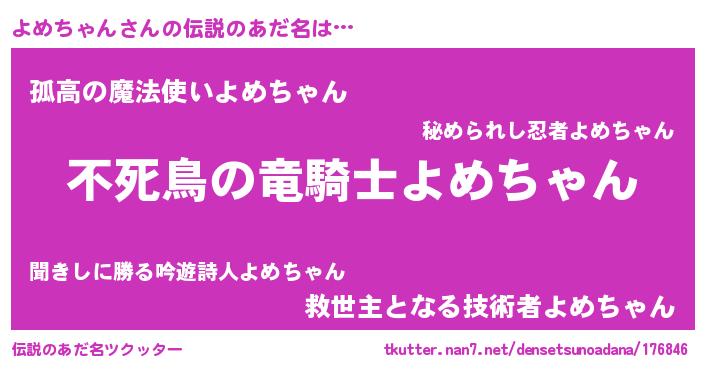 | 意味不明あだ名 | 『自称よめちゃん』『ペロリンよめちゃん』 |